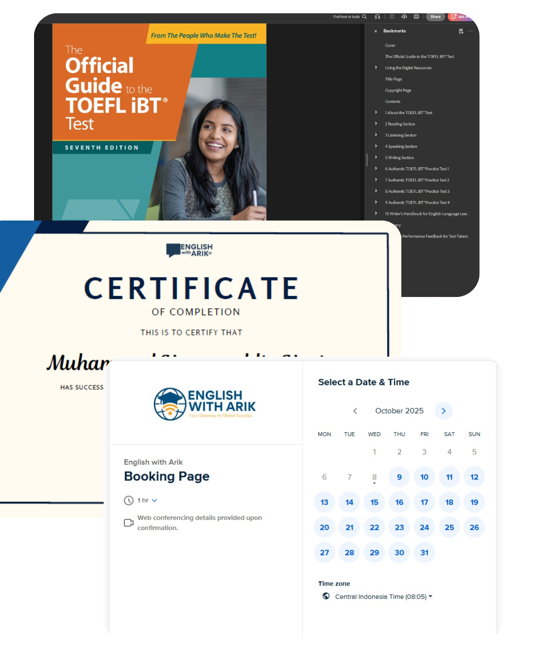 At English with Arik, our TOEFL iBT Preparation Program is designed to match your level, goal, and schedule, with personal coaching, full materials, and measurable progress.